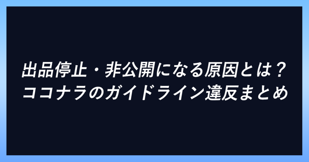 「突然サービスが非公開になってしまった…」「出品停止の通知が届いたけど、何が原因なのかわからない」 ココナラを利用していると、ある日突然このような事態に直面することがあります。一度出品停止になると、サービスの再開まで時間がかかる場合もあり... -