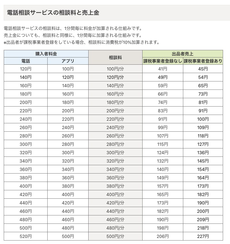 ココナラの「電話相談サービス」では、通常の出品とは異なる独自の手数料体系が採用されています。