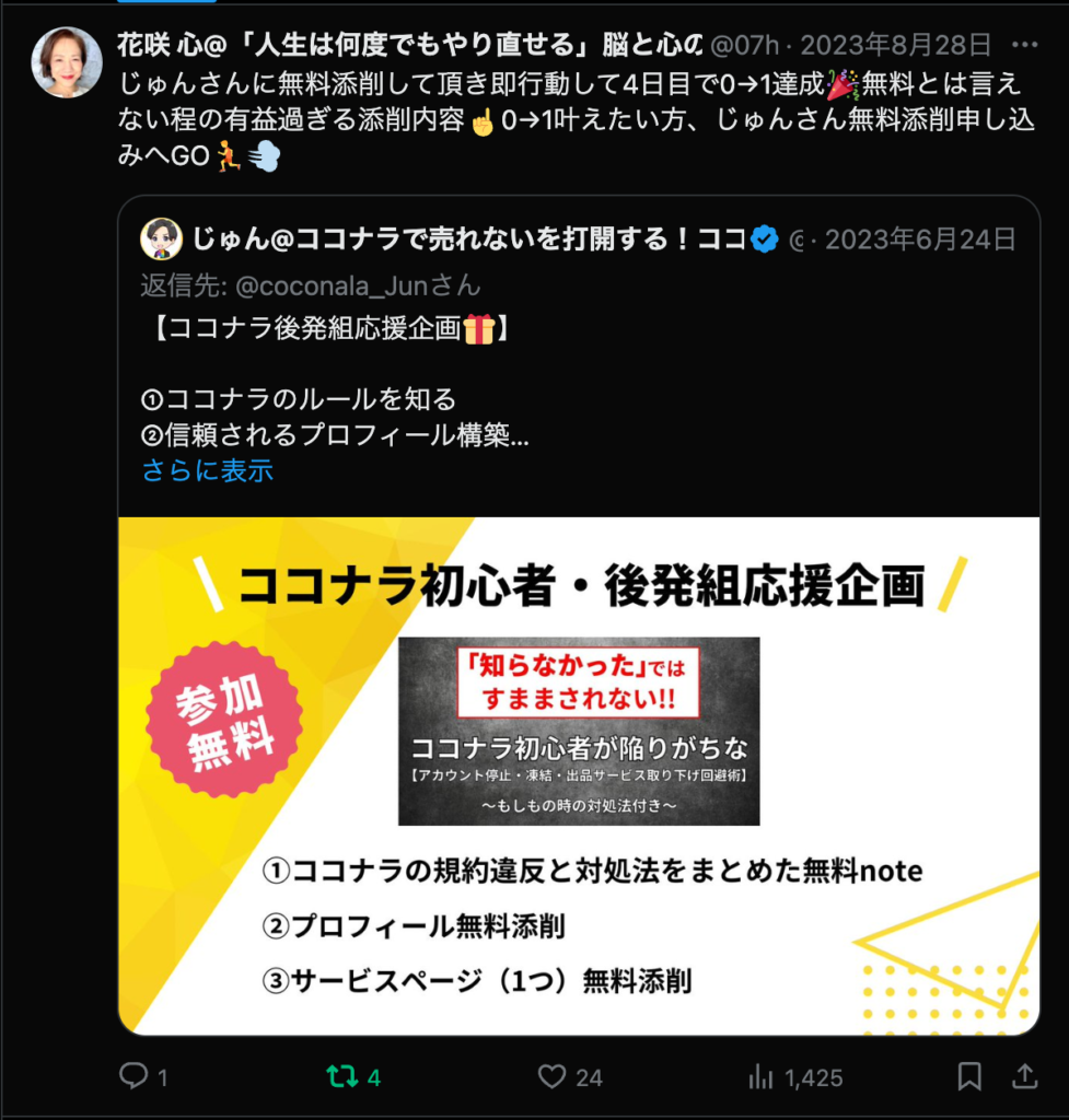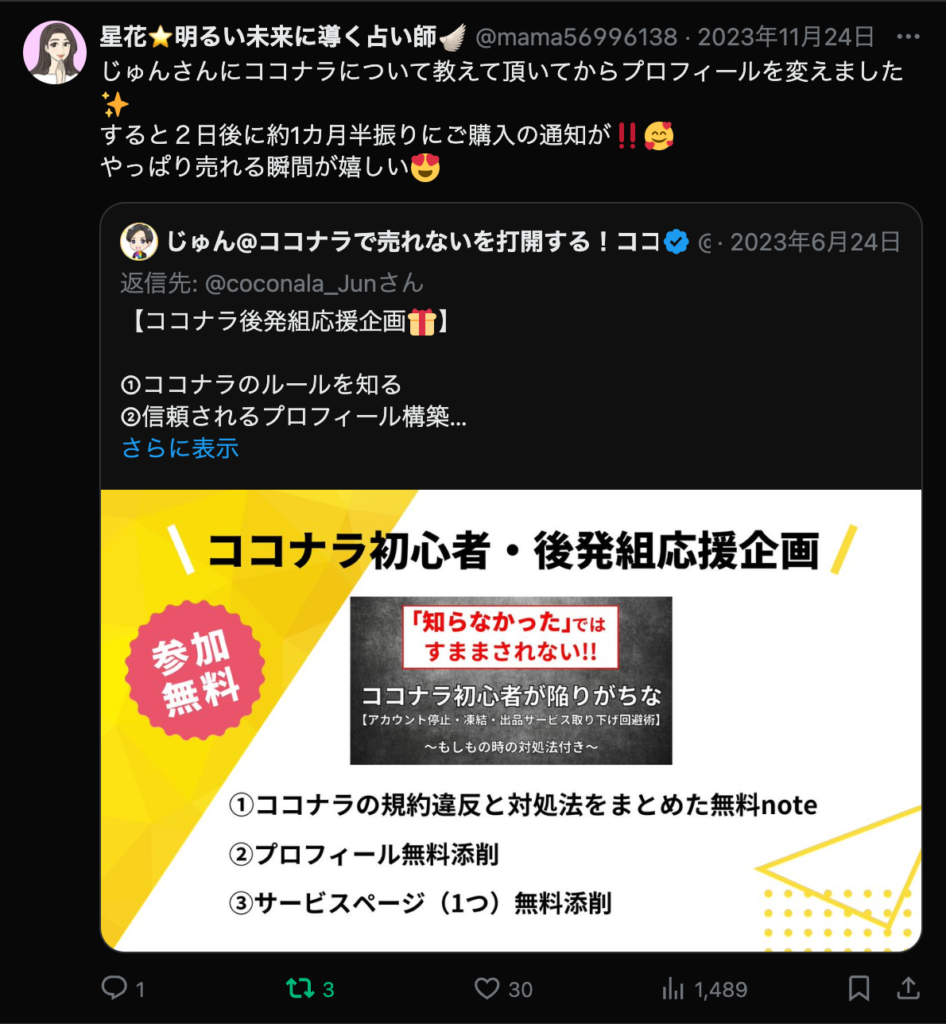 - ✅ SNSでの集客に限界を感じていた方が、ココナラ内の導線改善で【フォロワーゼロから安定受注】