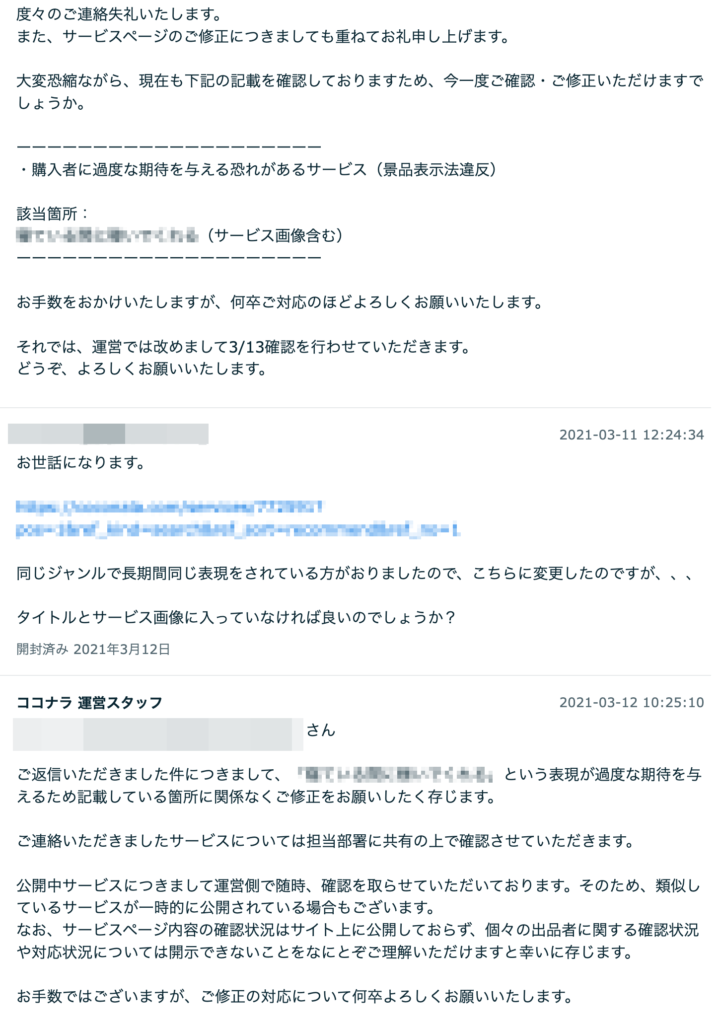・ココナラ運営と何十回もメールをやりとりする日々