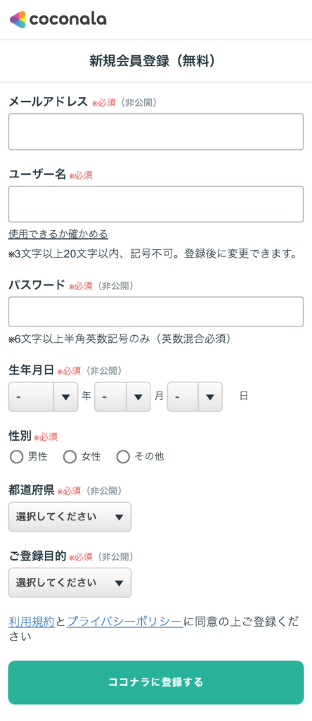 ココナラを始めるには、まず無料の会員登録が必要です。