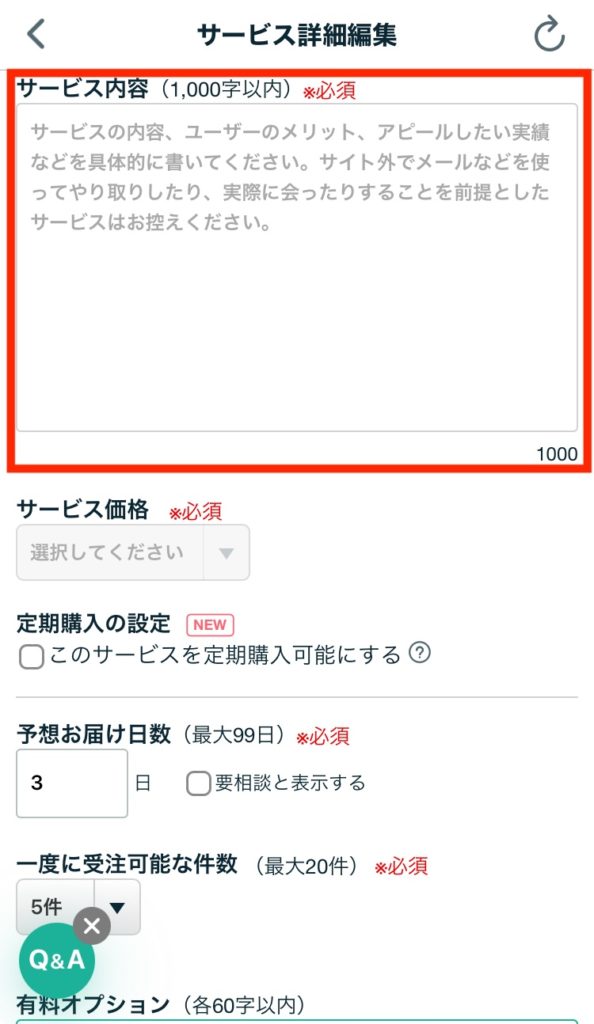 ここがココナラでの“お店づくり”にあたる部分。購入者に選ばれるためには、「内容が分かりやすく、魅力的に伝わっているか」がカギです。