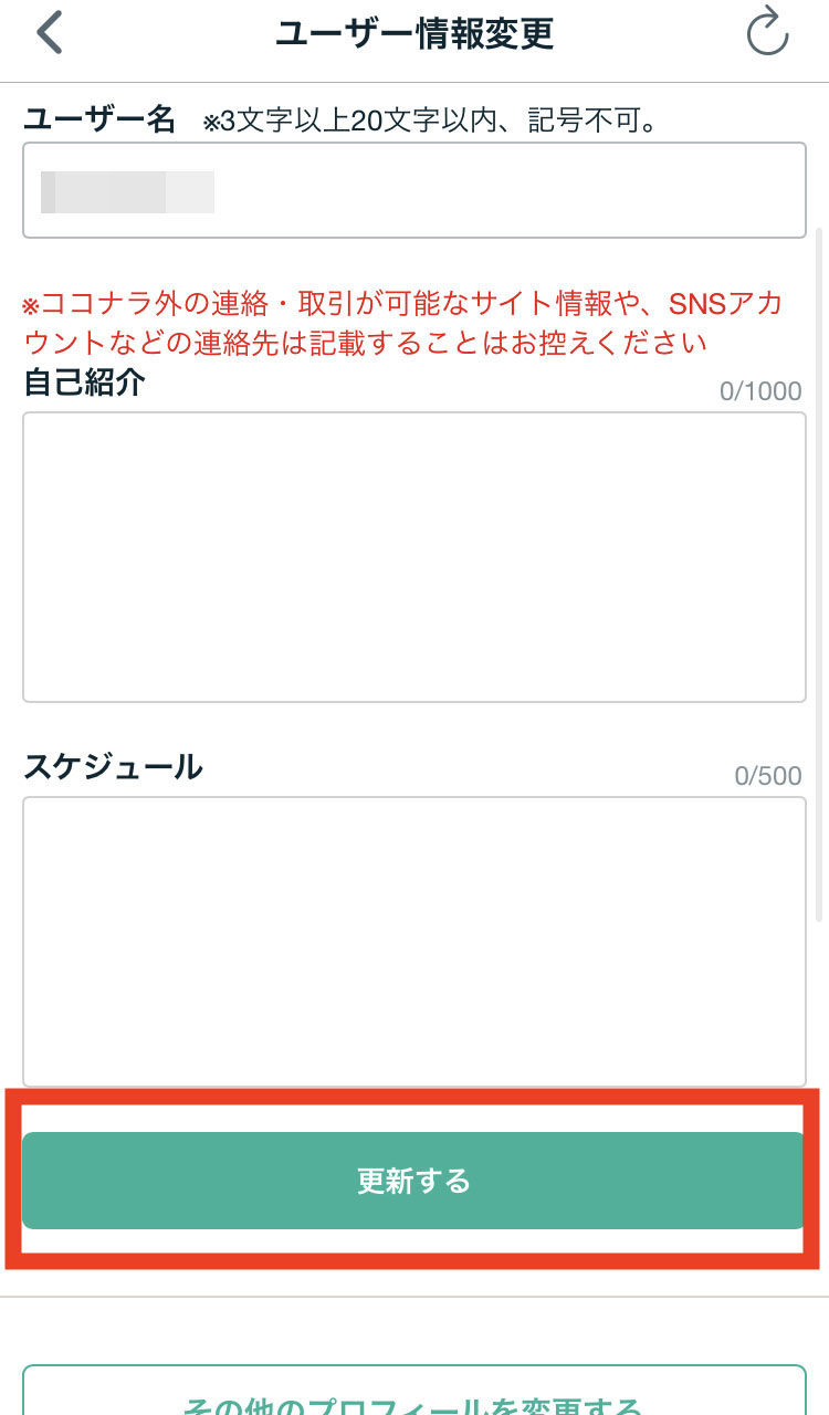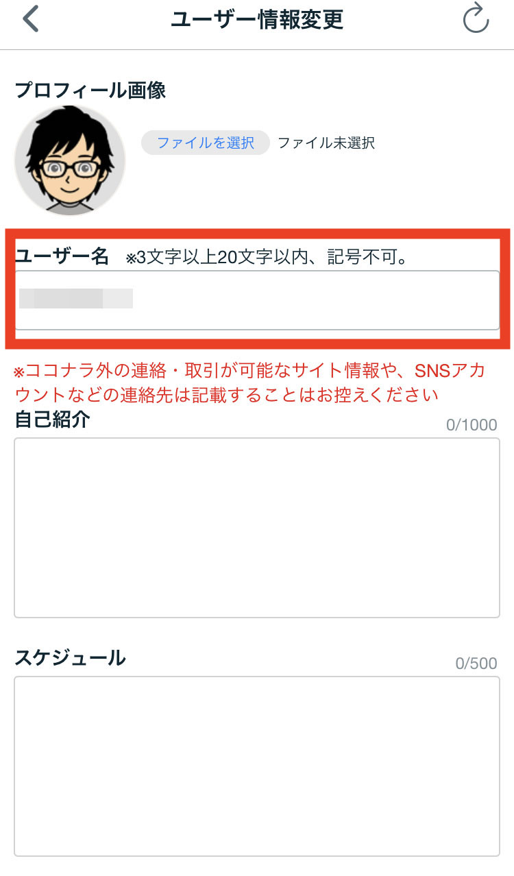 ココナラのユーザー名の変更方法